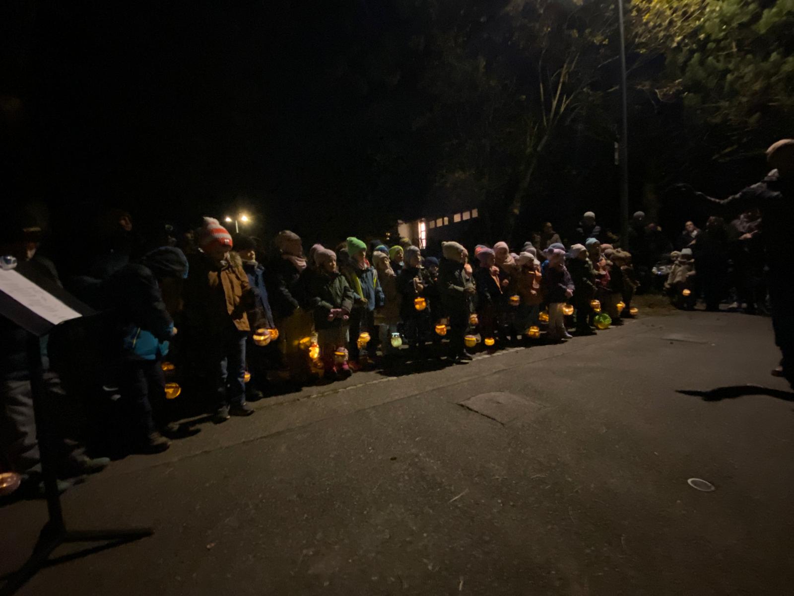 Am Dienstagabend, dem 11. November 2025, fand der alljährliche Räbeliechtliumzug statt. Bei mildem Novemberwetter durften sich die Besucherinnen und Besucher an den wunderschön geschnitzten Räben und an den klangvollen Stimmen des Kindergartens sowie der ersten und zweiten Klasse der Primarschule Stetten erfreuen. Der Umzug begann mit zwei Liedern vor der Mehrzweckhalle. Anschliessend zogen die Kinder in Richtung des Schulhauses, und dank der klaren Nacht hatten die Besucherinnen und Besucher beste Sicht auf die tollen Räben.